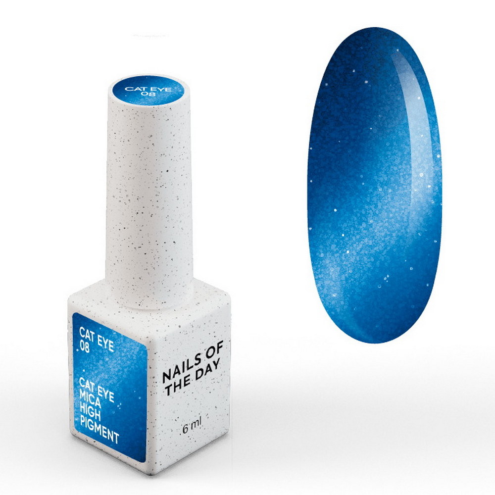 NailsOfTheDay Gel Polish Cat Eye 08 синий гель-лак кошачий глаз с мелкой талью с легким светоотражающим эффектом, перекрывающийся в один слой, 6 мл