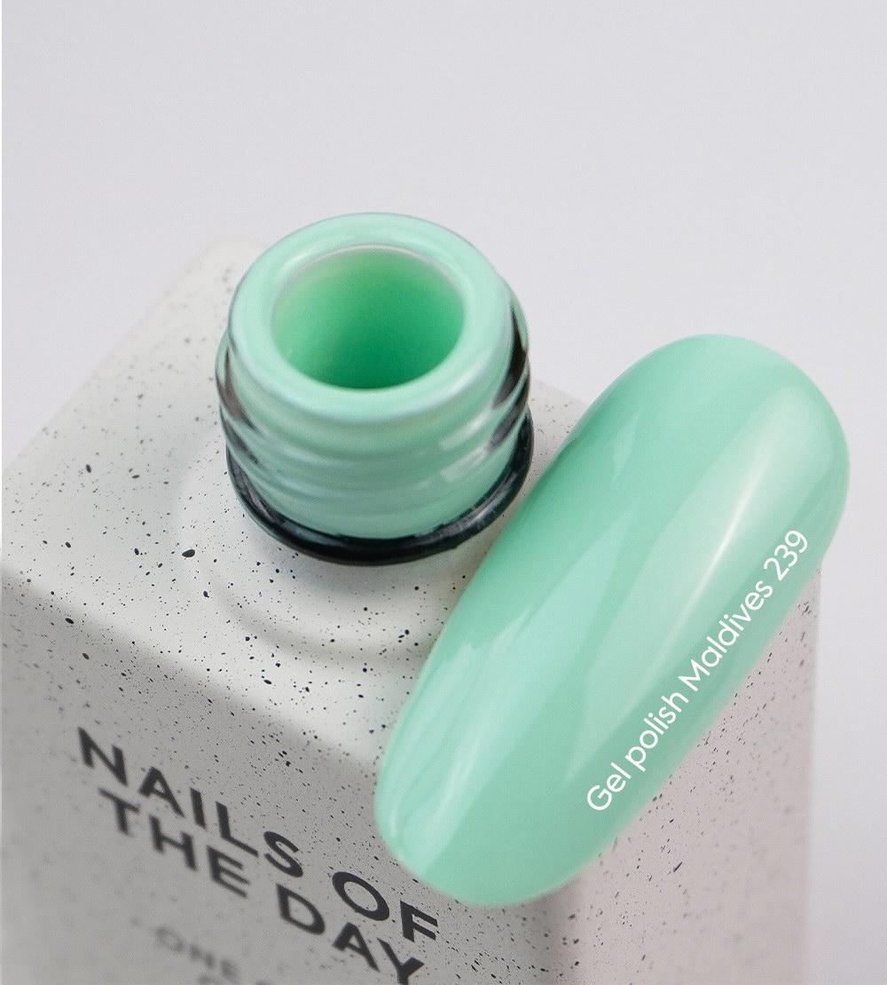 Nails of the Day Gel polish Maldives – теплый мятно-зеленый гель-лак для ногтей, перекрывающий в один слой, 10 мл.