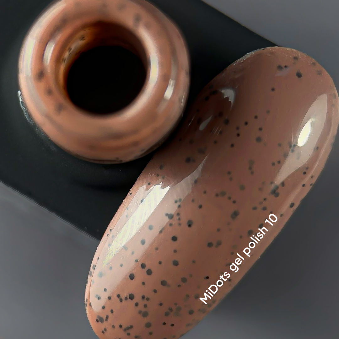 Nails Of The Day MiDots gel polish №10 – светло-коричневый гель-лак с черными точечками для ногтей, 10 мл