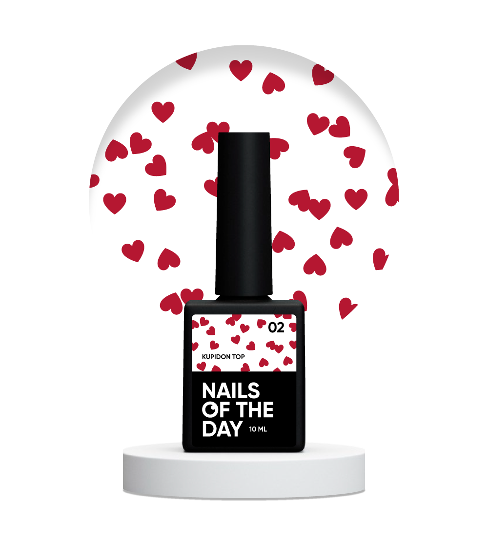 Nails of the Day Kupidon top — современное и нежное финишное покрытие для ногтей с сердечками, без липкого слоя: