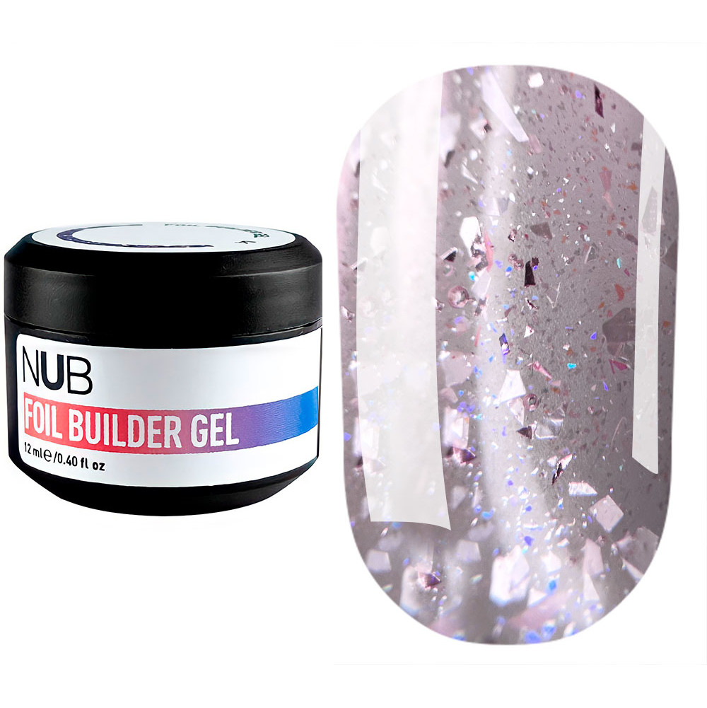 Биллдер-гель для моделирования ногтей полупрозрачный с поталью NUB Foil Builder Gel №02, 12 мл