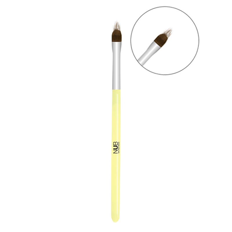 Кисть для градиента, омбре NUB - специальный инструмент, имеющий разную длину ворса в рабочей зоне. Такая оригинальная конструкция облегчает процесс создания эффектных цветовых растяжек и плавных переходов. В результате мастеру удается без особых усилий и довольно быстро украсить ноготки красивым дизайном в виде модного оттеночного градиента или омбре в продольном или поперечном варианте. Ворс плоской формы, надежно закреплен в металлической обойме. Кисточка имеет лаконичный дизайн, яркую желтую ручку и радует высоким качеством.