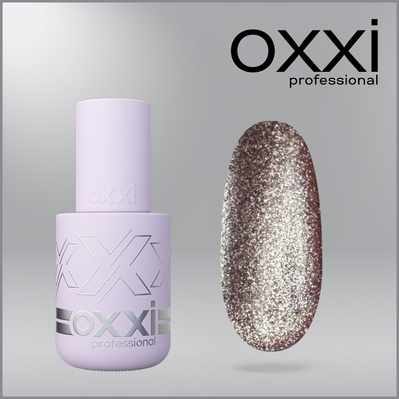 Гель-лак Oxxi Brillant Cat - оригинальное сияющее покрытие с сияющими переливами микрочастиц, создающих эффектный дизайн, придают маникюру черт загадочности Хорошую блестящую полоску, имитирующую кошачий глаз, можно сделать с помощью специального магнита.
