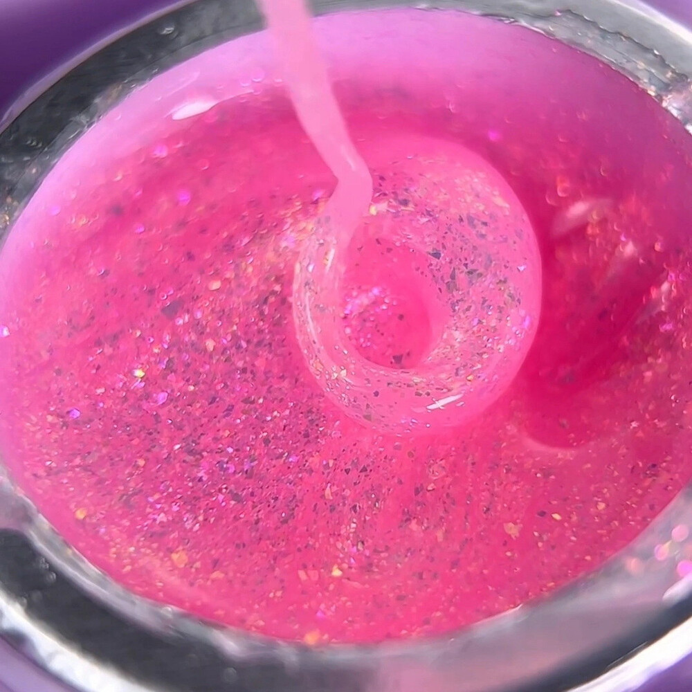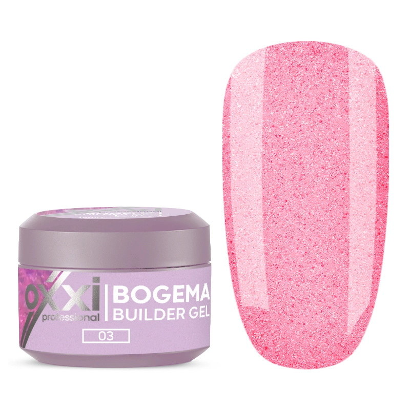 Моделирующий гель Oxxi Builder Gel Bogema 03 розовый с голографическими блестками, 15 мл