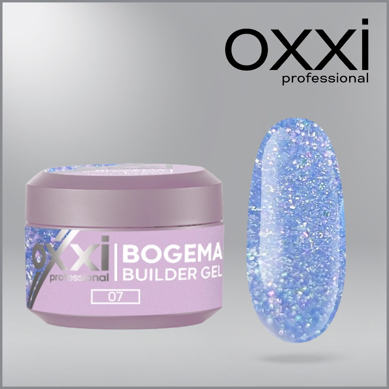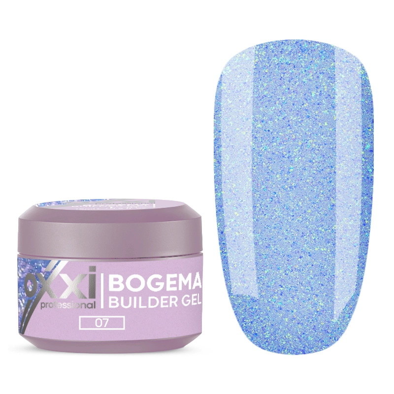 Моделирующий гель Oxxi Builder Gel Bogema 07 голубой с голографическими блестками, 15 мл