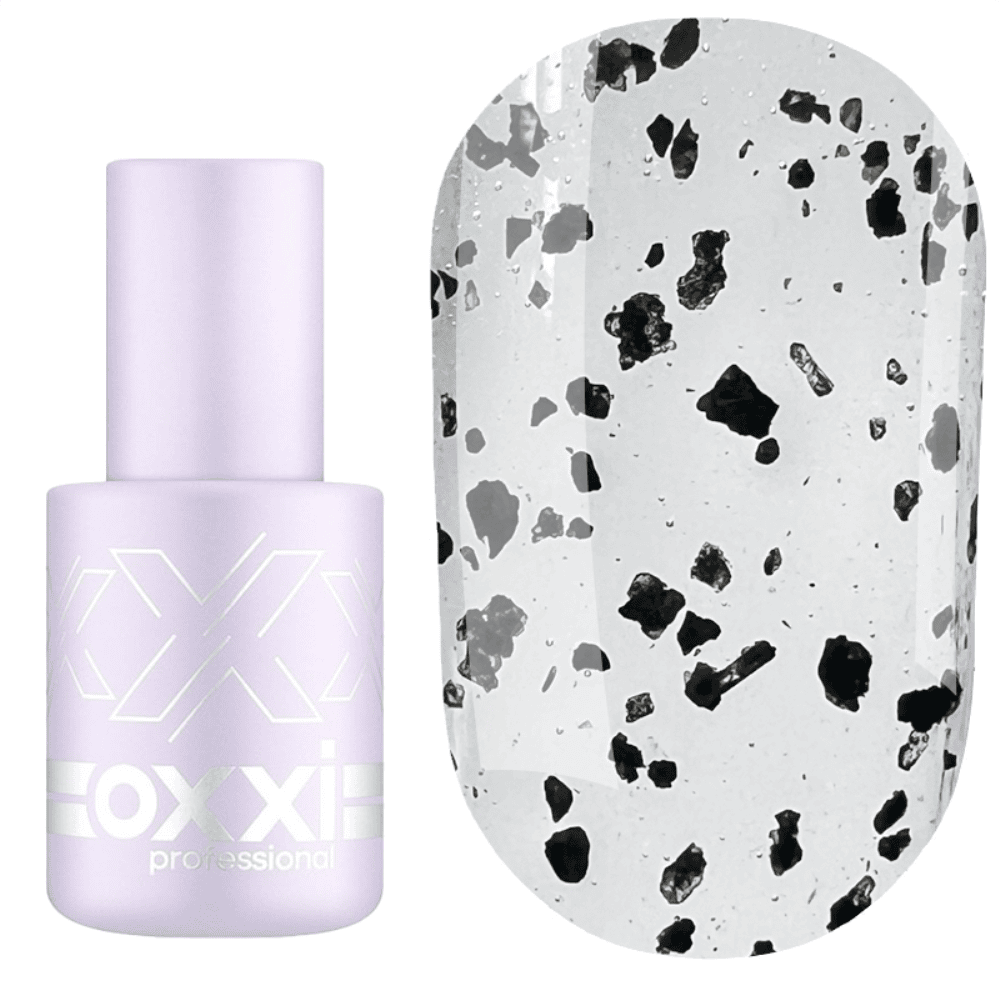 Топ для гель-лака Oxxi Professional Twist Top 10 мл - невероятно красивое финишное покрытие, эффектно и роскошно блестящее, глянцевое покрытие трехфазной гелевой системы без остаточного дисперсного слоя, защищает покрытие от повреждений, отрицательных воздействий внешней среды, сохраняет цвет. Прозрачная основа Топа дополнена черными и белыми вкраплениями – его секрет и главное преимущество.