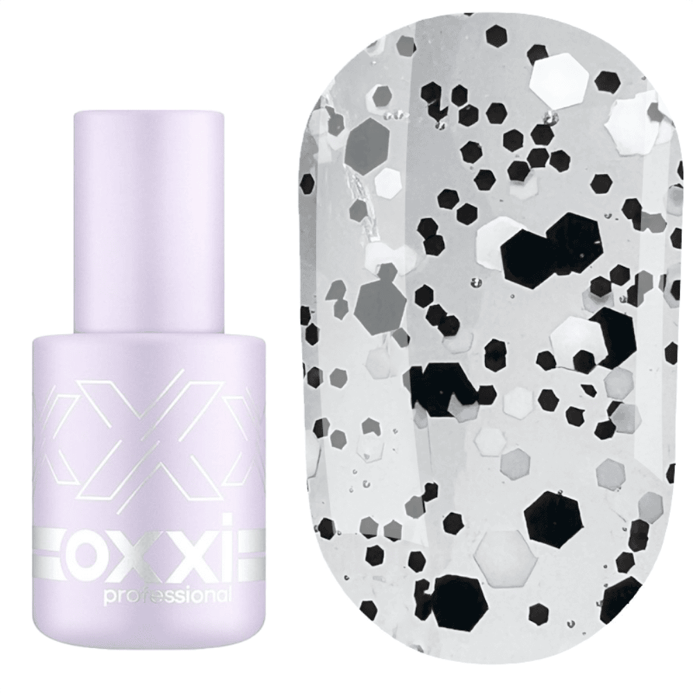 Топ для гель-лака Oxxi Professional Twist Top 10 мл - невероятно красивое финишное покрытие, эффектно и роскошно блестящее, глянцевое покрытие трехфазной гелевой системы без остаточного дисперсного слоя, защищает покрытие от повреждений, отрицательных воздействий внешней среды, сохраняет цвет. Прозрачная основа Топа дополнена черными и белыми вкраплениями – его секрет и главное преимущество.