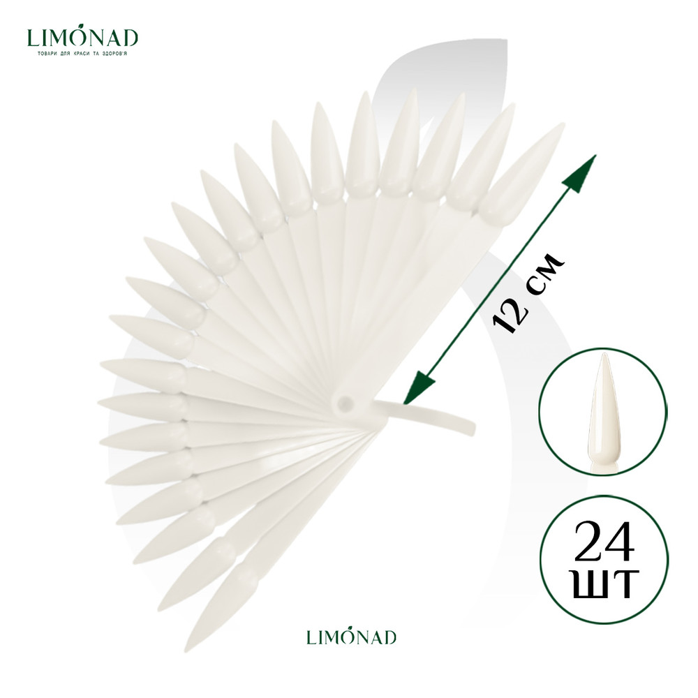Купить Палитра для демонстрации гель-лаков и дизайна "Веер" Стилет молочный 12 см, 24 шт,, вы сможете в нашем интернет магазине limonad с доставкой по всей Украине в том числе и Киев, Днепр, Одесса, Харьков, Запорожье, Одесса, Львов и многие другие населенные пункты.