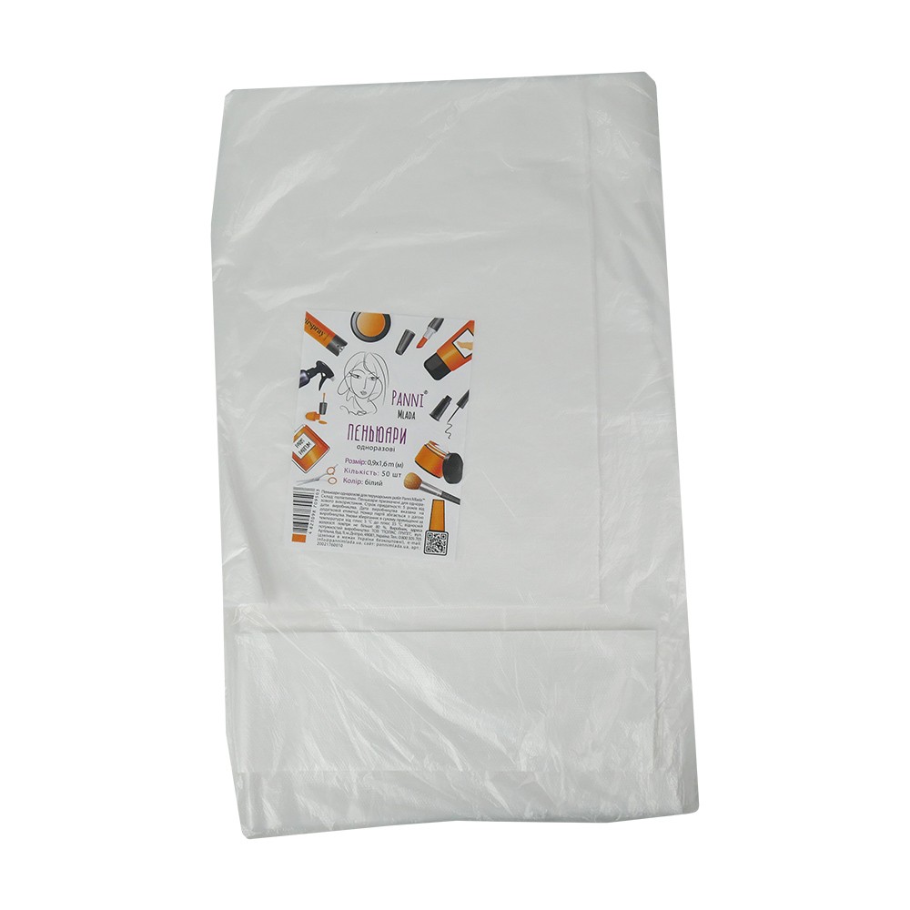 Купить Пеньюары для парикмахерских работ Panni Mlada 0.9х1.6 м (полиэтилен, белый) 50 штук (20021760010),, вы сможете в нашем интернет магазине limonad с доставкой по всей Украине в том числе и Киев, Днепр, Одесса, Харьков, Запорожье, Одесса, Львов и многие другие населенные пункты.