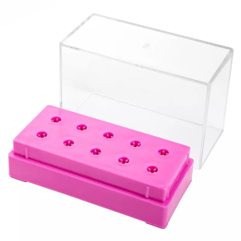 Купить Подставка - контейнер для фрезерных насадок, на 10 ячеек с крышкой, Розовый,, вы сможете в нашем интернет магазине limonad с доставкой по всей Украине в том числе и Киев, Днепр, Одесса, Харьков, Запорожье, Одесса, Львов и многие другие населенные пункты.
