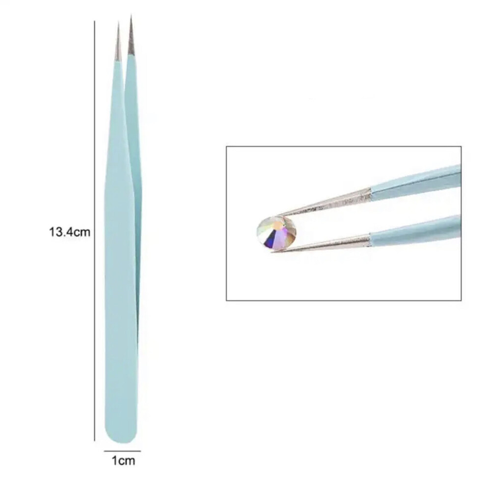 Прямой пинцет с острыми кончиками для ногтей, захвата страз и мелкого декора - Бирюзовый А-2
