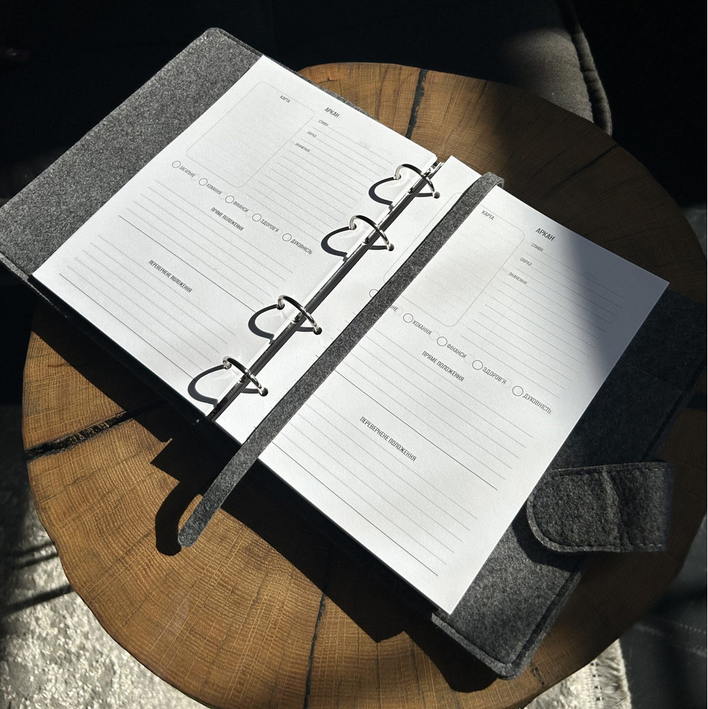 Если вы хотите сделать подарок себе или знакомому тарологу, выбирайте планер в фетровой или кожаной обложке на кольцах. По окончании письменного блока можно легко заменить его на другой.