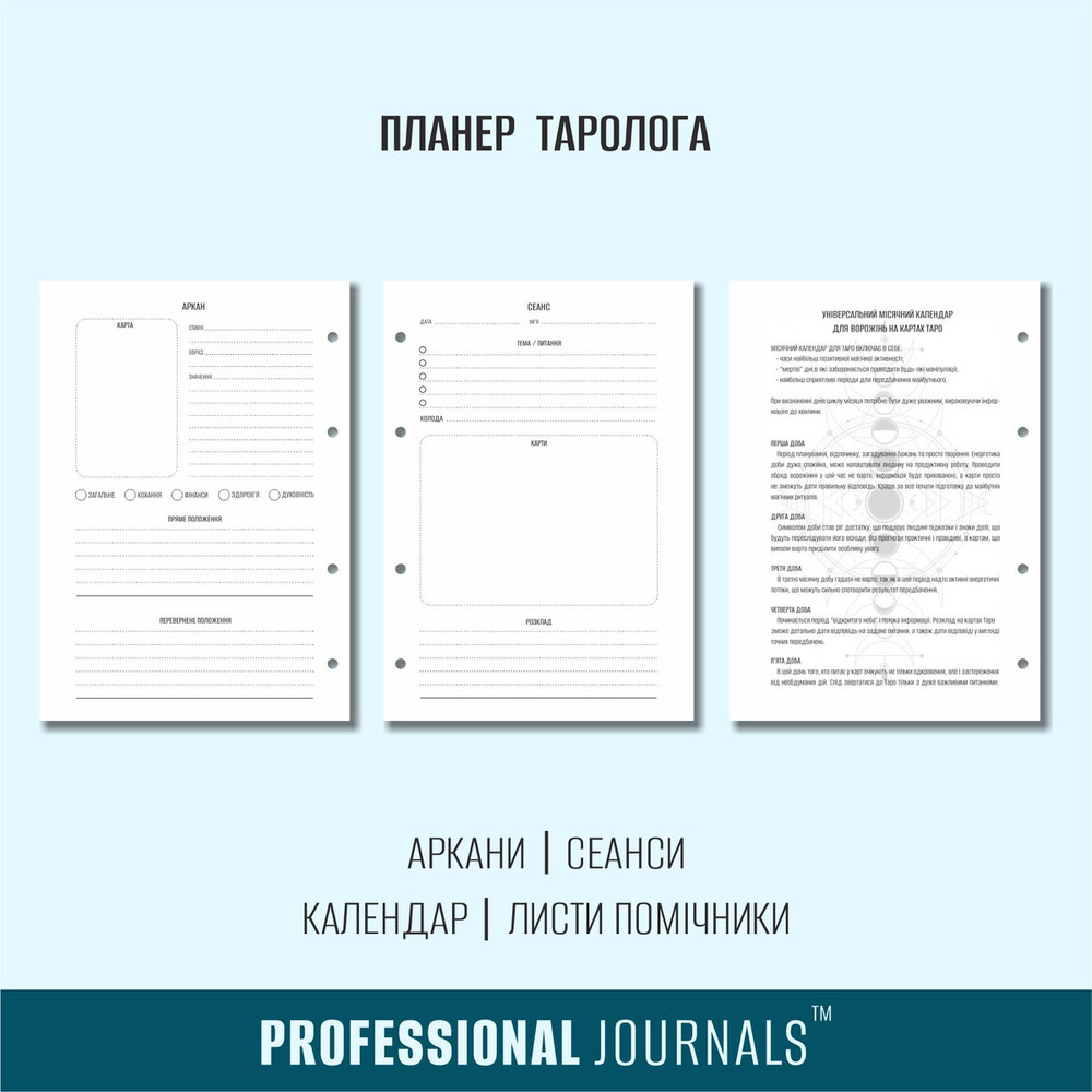 Внутри планера таролога содержит: