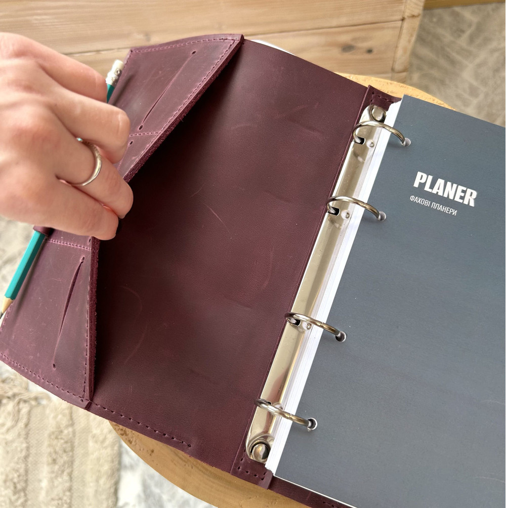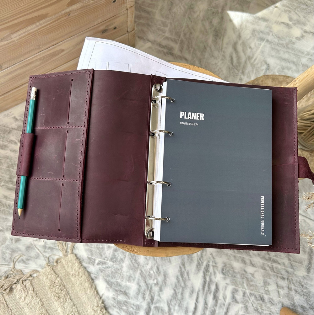Блокнот оформлен в обложку из натуральной кожи Crazy Horse, с кольцевым механизмом.