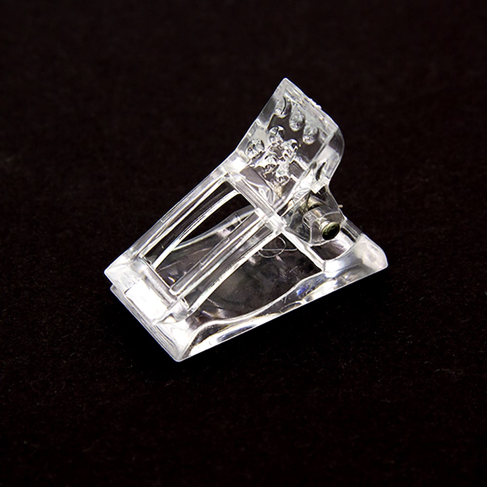 Зажим-прищепка - незаменимый помощник, облегчающий работу по созданию красивого маникюра. Зажим для фиксации верхних форм, типсов при наращивании ногтей полигелем и акрилгелем. Зажим имеет оптимальную степень нажатия, позволяющую надежно зафиксировать форму на ногте, не изменив толщину распределения материала на типсе. Материал зажима: прозрачный пластик.
