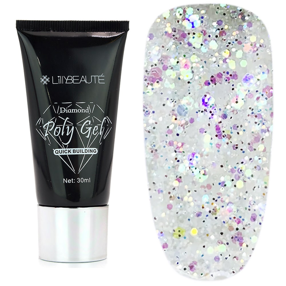 Полигель Lilly Beaute Diamond Poly Gel 30 мл, №01 голограммные блестки