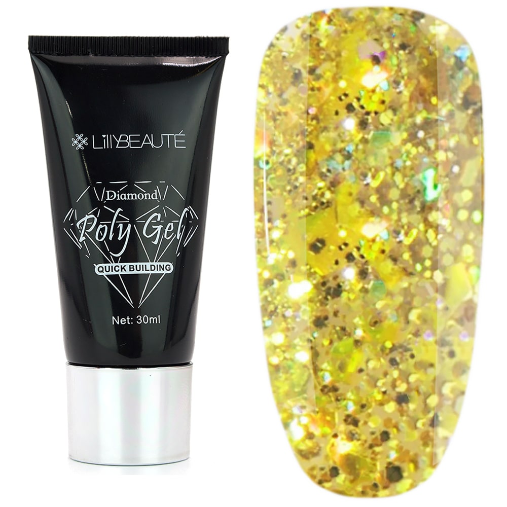 Полигель Lilly Beaute Diamond Poly Gel 30 мл, №05 золотые голограммные блестки