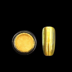 - Далее насыпьте на ноготь втирку и распределяйте зеркальный материал от центра к краю. Не стесняйтесь положить больше пудры, излишки смахнете кисточкой. Старайтесь втирать очень хорошо, чтобы пудра взялась!