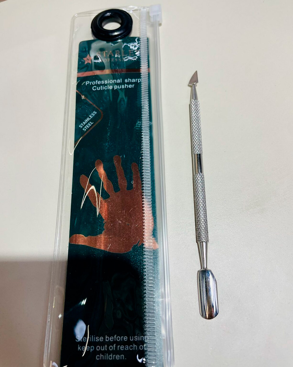 Пушер для маникюра от производителя Starlet Professional выполнен из высококачественного материала. Сталь нержавеющая, легко поддающаяся дезинфекции. Удобно лежит в руке, не скользит. Инструмент имеет две рабочие стороны: одна для отодвигания кутикулы, а другая (скошенная) для ее удаления из ногтевой пластины. Используется для процедур маникюра и педикюра.