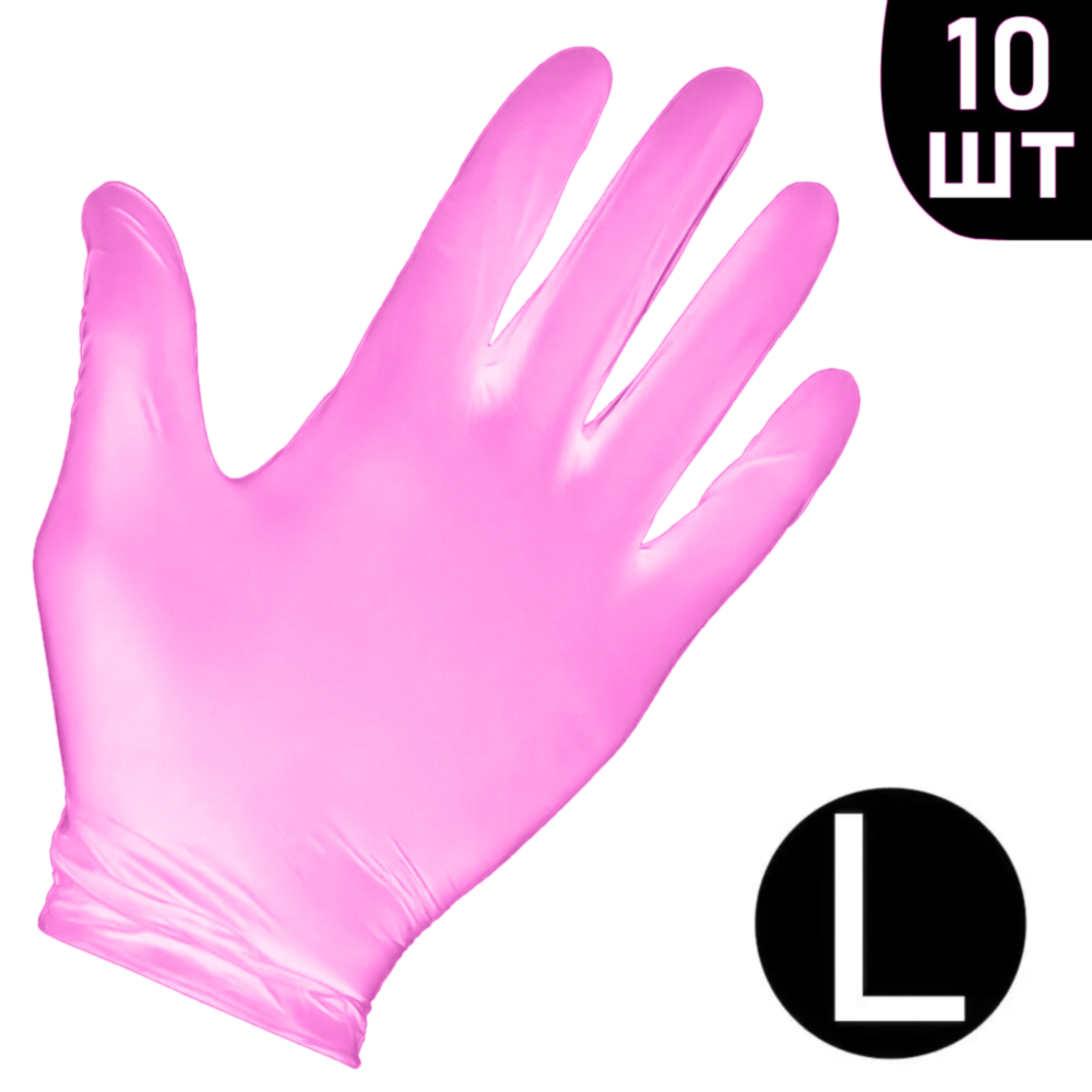 Перчатки нитриловые неопудренные розовые 10 шт, L