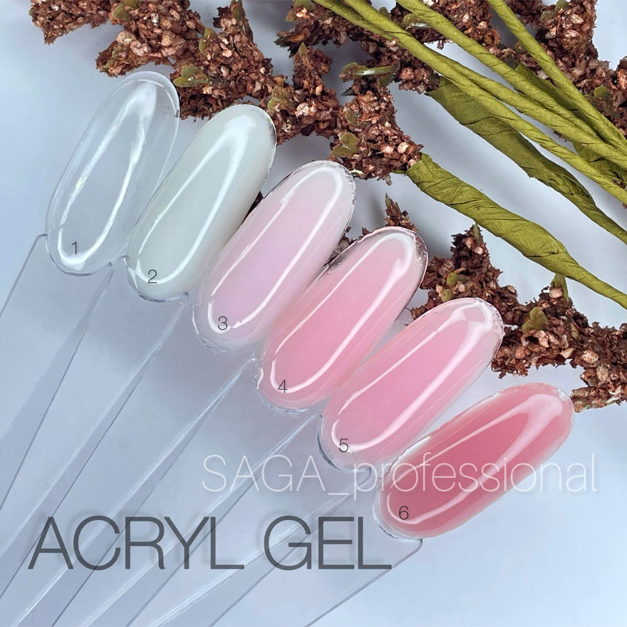 Saga professional Acryl Gel - качественные материалы для наращивания, ремонта и укрепления ногтей. Такой гель мелкозернистый, легко наносится и не прилипает к кисточке. Также он не забивает фрезу во время снятия.
