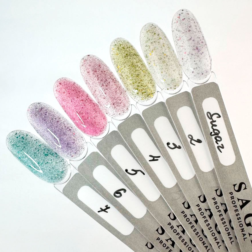 Saga Sugar Base — это нежное сочетание цветного покрытия и сияющего шиммера, вдохновленного текстурой сахарной пудры. База имеет среднюю плотность, легко наносится и самовыравнивается, что делает ее удобной в использовании как начинающим, так и опытным мастерам. Благодаря плотному пигменту и мелкому блеску, база может выступать как самостоятельным покрытием, так и основой для дизайна.