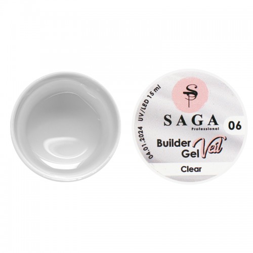 Saga Professional Builder Gel Veil - линейка жестких, не гибких гелей, разработанных для наращивания и укрепления ногтей. Имеют среднюю по густоте консистенцию, низкокислотные. Подходят для работы с нижними формами. Адаптированы к технике "без опила". Требуют подложки. Не дают усадки. При полимеризации могут нагреваться и вызывать небольшое жжение.