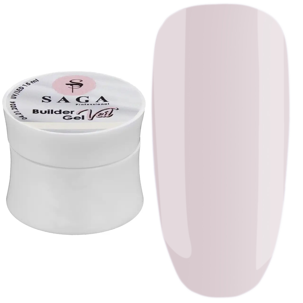 Saga Professional Builder Gel Veil - линейка жестких, не гибких гелей, разработанных для наращивания и укрепления ногтей. Имеют среднюю по густоте консистенцию, низкокислотные. Подходят для работы с нижними формами. Адаптированы к технике "без опила". Требуют подложки. Не дают усадки. При полимеризации могут нагреваться и вызывать небольшое жжение.