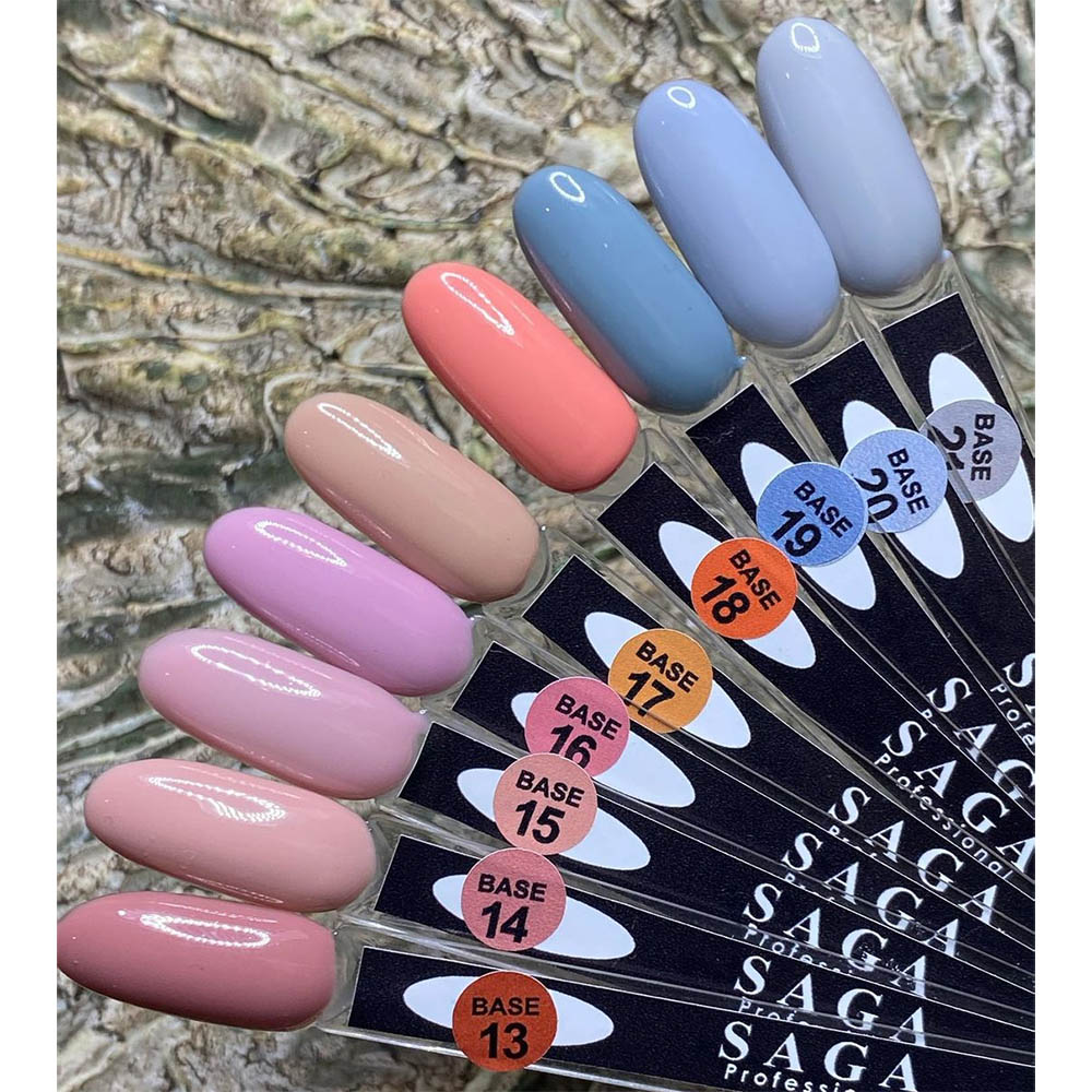 База Saga Color Base наносится на подготовленные ногти (гигиенический маникюр, дегидратация и обезжиривание) укрепляющим или тонким слоем. После полимеризуем в 36 Вт UV-лампе – 2 мин., в LED – 30-60 сек. Затем при желании нанести гель-лак, выполнить френч-маникюр, или сразу покрыть топом.