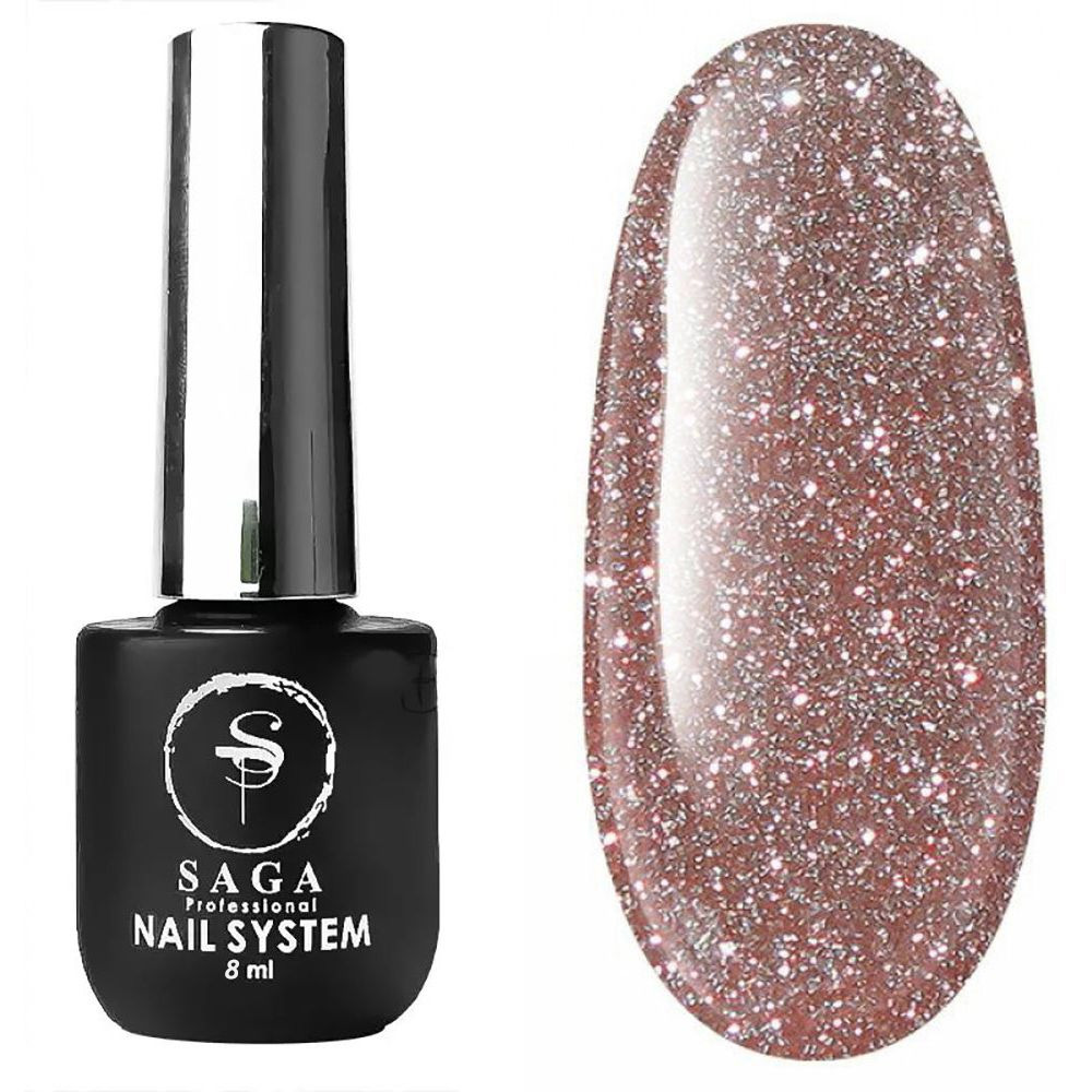 Saga Fiery Base №04 (персиковый, светоотражающий) 8 мл – камуфлирующая база для гель-лака из новой линейки светоотражающих баз от бренда Saga. Легкий шиммер при солнечном свете сменяется неудержимым бриллиантовым сиянием при попадании под искусственное освещение. Покрытие можно использовать и в качестве базы, и как цветной гель-лак на подложку. База плотно пигментированная, дает хороший блеск даже при нанесении в один слой, не кислотная, при полимеризации не печет.