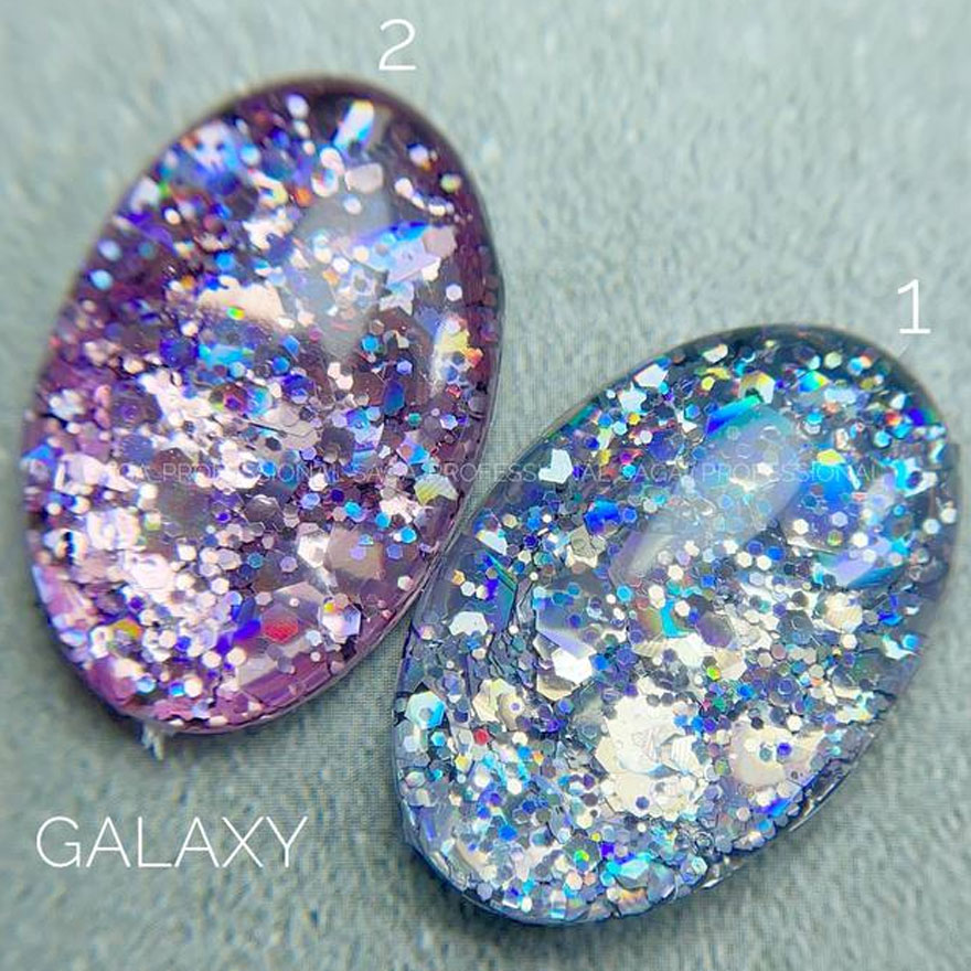 Гель Galaxy Glitter от производителя Saga Professional это инновационный дизайн-гель для ногтей, в состав которого входит разноцветный глиттер, брокат и фольгированные элементы разных размеров и форм. Glitter gel применяется в качестве декоративного покрытия. Гель имеет плотную консистенцию, легко наносить и равномерно распределять по ногтевой пластине. Гель для ногтей Saga идеально подходят для праздничного образа, чтобы создать яркий, блестящий, мерцающий маникюр. Гель с глиттером можно использовать самостоятельно, на цветной гель-лаковой подложке, для дизайна с растяжкой, а также при моделировании выкладного френча. Наносить можно как на натуральные ногти, так и на искусственные.