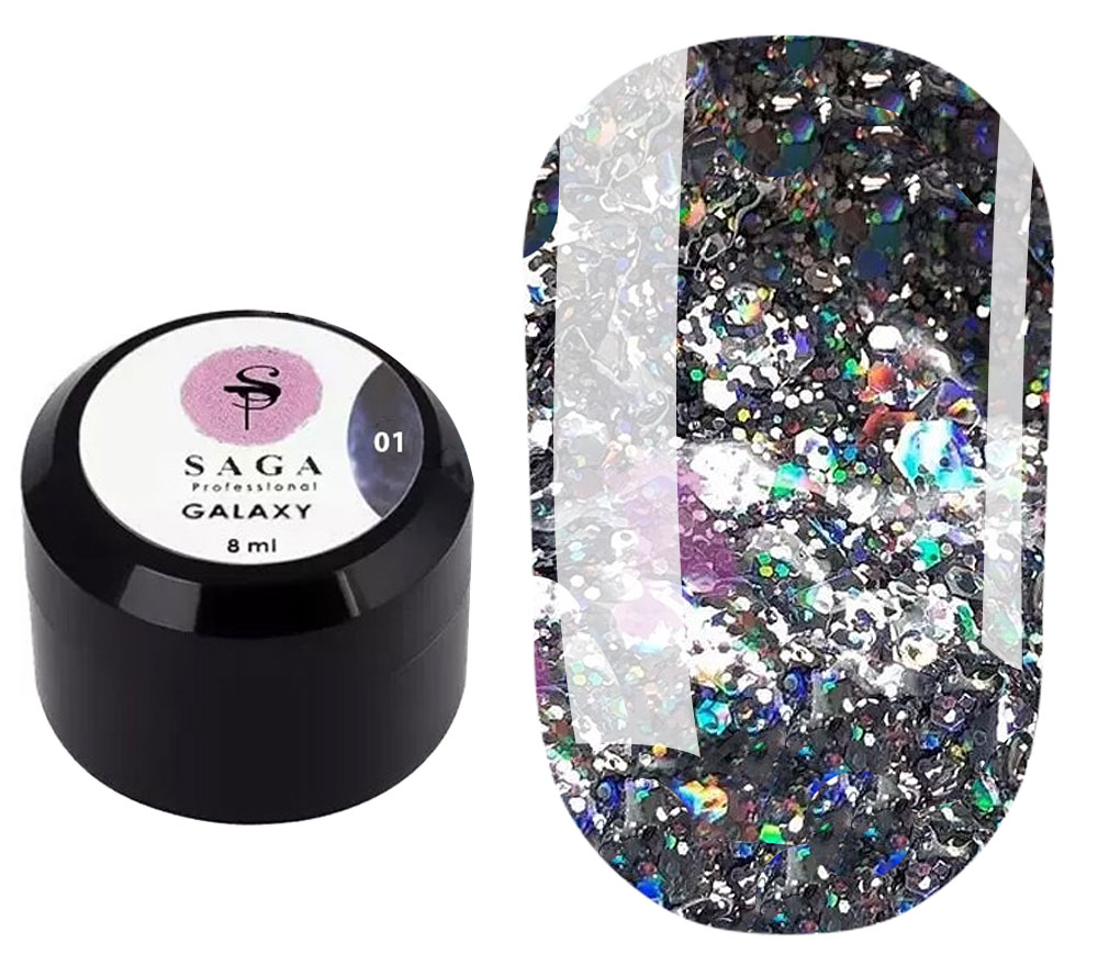 Глиттерный гель SAGA GALAXY glitter №01, 8 мл