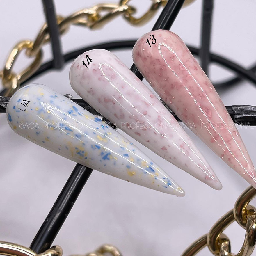 Камуфлирующая база Saga Leaf UA Base №13 (молочно-розовый с розовой поталью) 8 мл – базовое покрытие, которое позволяет придать оттенок натуральным ногтевым пластинам. Легко наносится, гарантирует прочное сцепление, предотвращает отслаивание и сколы, скрывая мелкие визуальные недостатки, делая поверхность более ровной и гладкой. Средство имеет среднюю по густоте консистенцию, наносится легко и самовыравнивается, не требует дополнительного опила, хлопья потали ровно распределяются по ногтю и не топорщатся. Такая база не утяжеляет ногтевую пластину, с ней можно пропустить этап нанесения цветного гель-лака, при этом маникюр будет выглядеть элегантным и качественным.