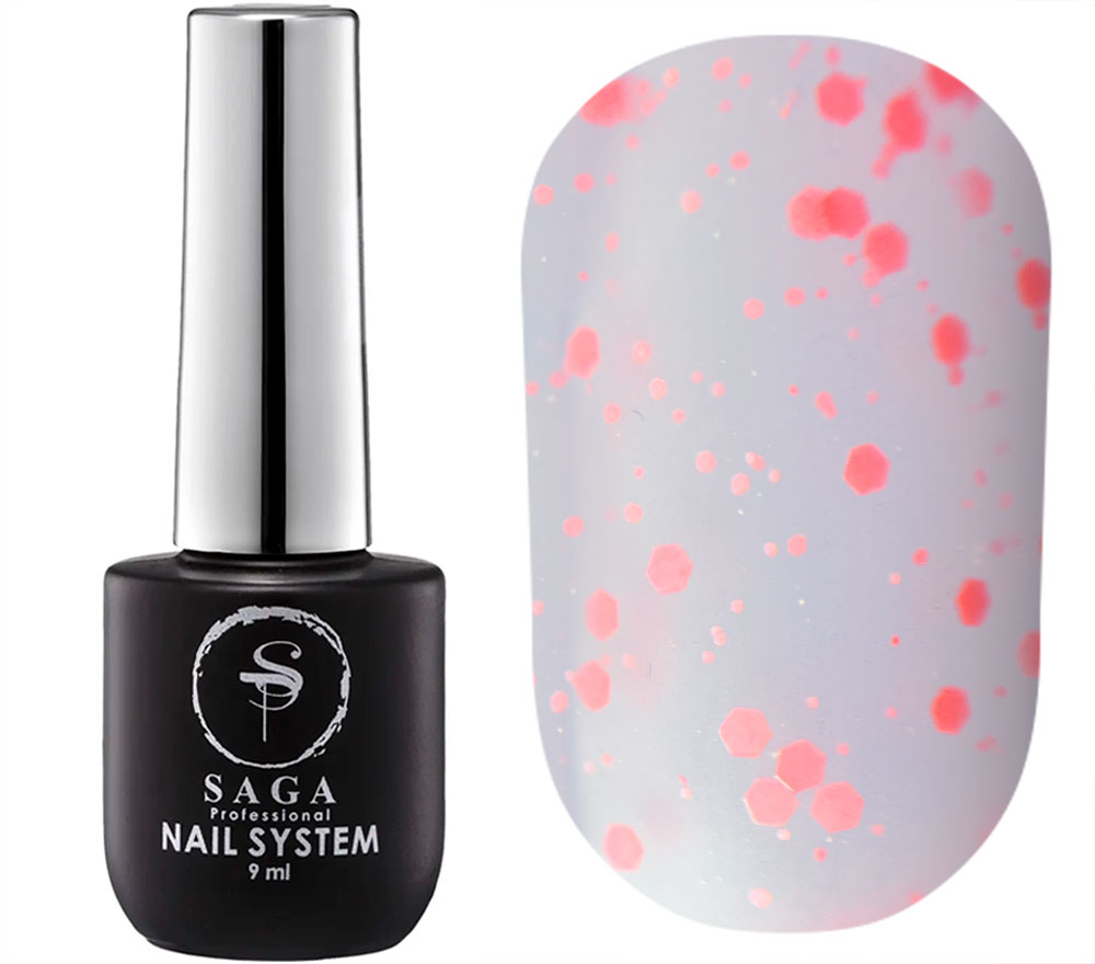 Матовый топ без липкого слоя с камифубуками Saga Mosaic №01 кораловый, 9 мл