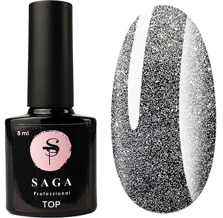Светоотражающий топ для ногтей Saga Fiery Top - топ без липкого слоя со Светоотражающим шиммером.