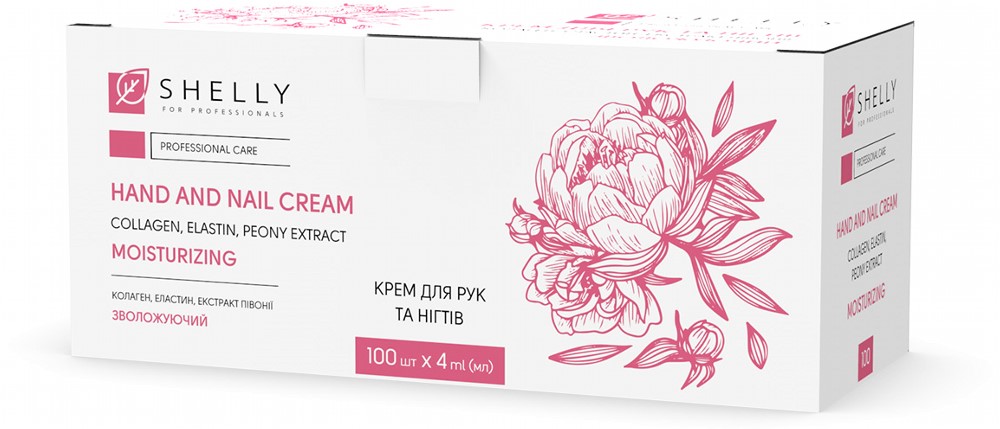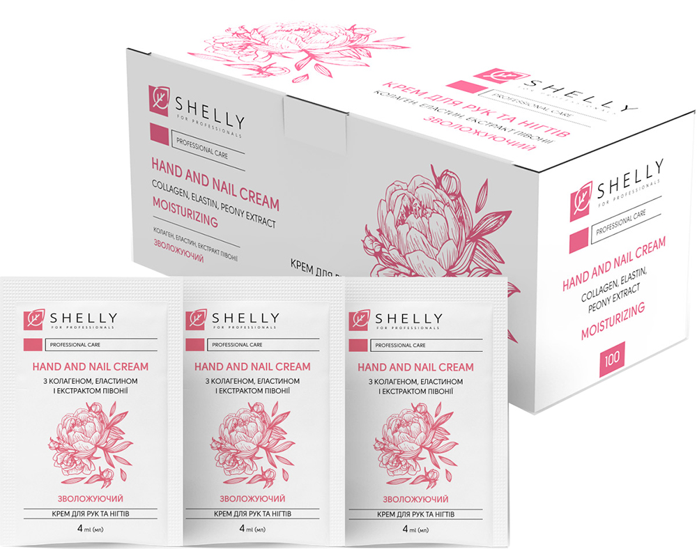 Купить Крем для рук и ногтей с коллагеном, эластином и экстрактом пиона Shelly Professional Care Hand And Nail Cream, 4 мл х 100 шт.,, вы сможете в нашем интернет магазине limonad с доставкой по всей Украине в том числе и Киев, Днепр, Одесса, Харьков, Запорожье, Одесса, Львов и многие другие населенные пункты.