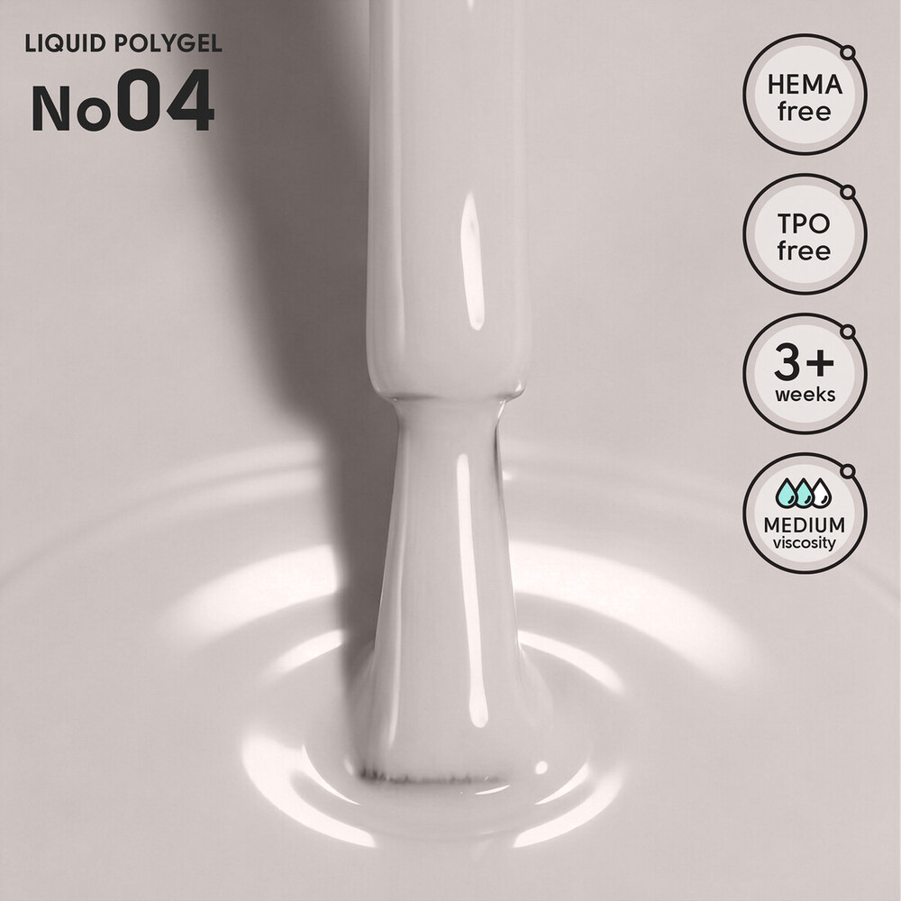 Жидкий полигель сочетает свойства геля и акрила, обеспечивая оптимальный баланс прочности и эластичности. Предназначена для укрепления и выравнивания ногтей короткой или средней длины. Имеет среднюю консистенцию, удобную в работе, легко выравнивается и позволяет создавать ровную архитектуру ногтевой пластины без перегрузки. Материал обеспечивает стойкость покрытия более 3 недель, сохраняет форму и эстетичный вид. Не содержит HEMA и TPO.