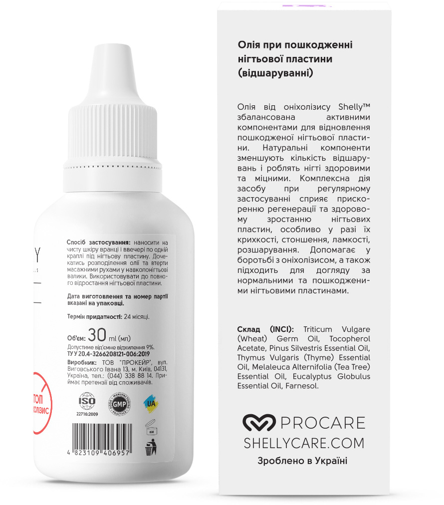 Масло от онихолизиса Shelly™ сбалансировано активными компонентами для восстановления поврежденной ногтевой пластины. Натуральные компоненты уменьшают количество отслоений и делают ногти здоровыми и крепкими. Комплексное действие при регулярном применении помогает ускорить регенерацию и здоровый рост ногтевых пластин, особенно в случае их хрупкости, истончения, ломкости, расслоения. Подходит для использования в лечении онихолизиса, а также для ухода за нормальными и поврежденными ногтевыми пластинами.