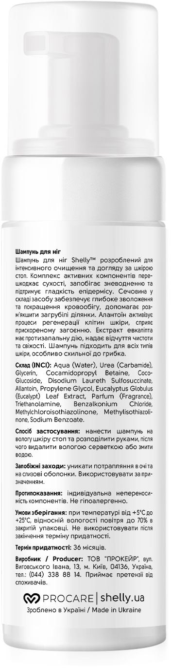 Шампунь-пена для ног с мочевиной, аллантоином и экстрактом эвкалипта Shelly, 200 мл
