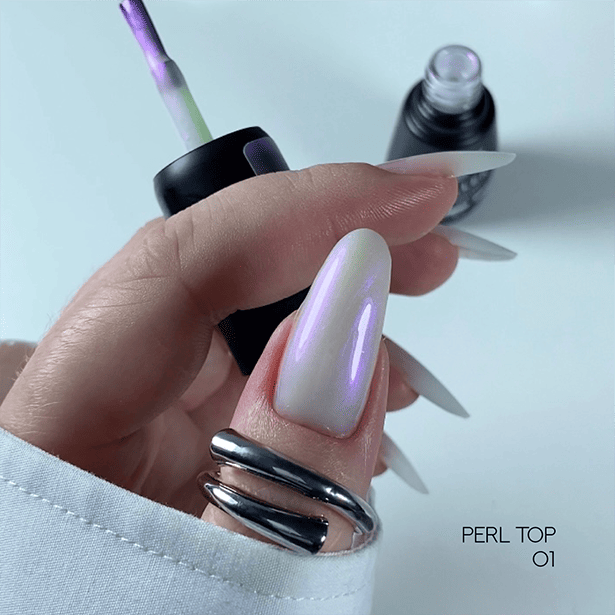 Perl top – это отличное сочетание жемчужного блеска и эффекта втирания в одном флаконе. Забудьте о длительных процедурах нанесения и проблемах со сколами. Теперь втирка и покрытие обычным топом доступны на одном этапе.