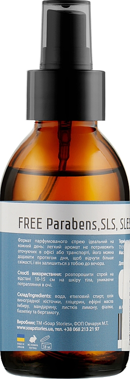 Особенности парфюмерного спрея 100% Natural №10 Blue от Soap Stories: