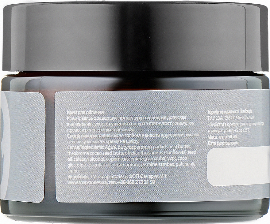 Крем после бритья Soap Stories №9 GREY 100% NATURAL, 50 мл