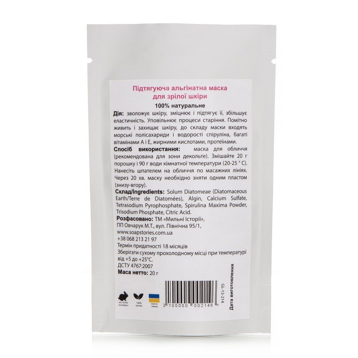 Купить Альгинатная маска Подтягивающая (лифтинг) для всех типов кожи Soap Stories, 20 г,, вы сможете в нашем интернет магазине limonad с доставкой по всей Украине в том числе и Киев, Днепр, Одесса, Харьков, Запорожье, Одесса, Львов и многие другие населенные пункты.