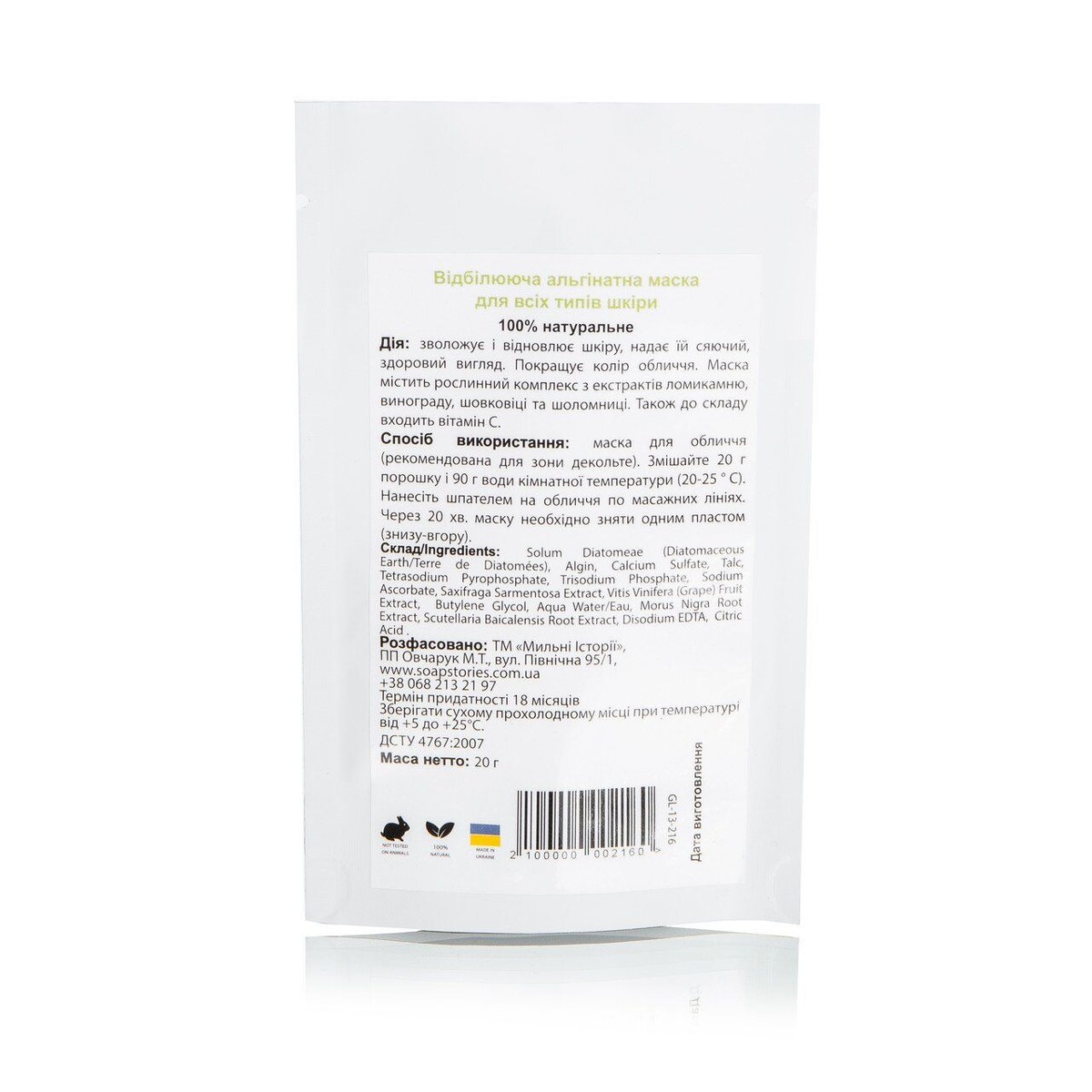 Купить Альгинатная маска Отбеливающая для всех типов кожи Soap Stories, 20 г,, вы сможете в нашем интернет магазине limonad с доставкой по всей Украине в том числе и Киев, Днепр, Одесса, Харьков, Запорожье, Одесса, Львов и многие другие населенные пункты.