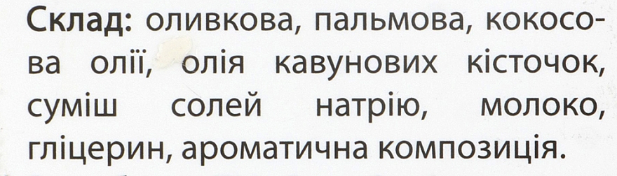 - содержит масла оливы, кокоса, арбузных косточек, поэтому оказывает эффективное укрепляющее, интенсивное смягчающее и мощное тонизирующее действие;