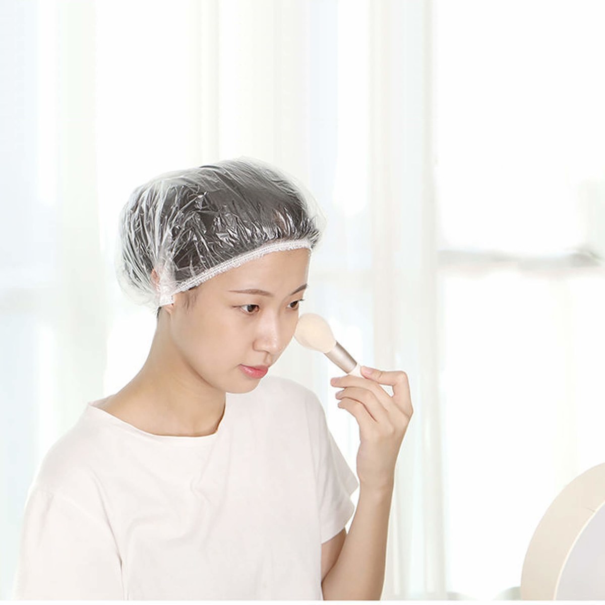 - за счет водонепроницаемого полиэтилена, шапочку для душа можно использовать без страха намочить волосы