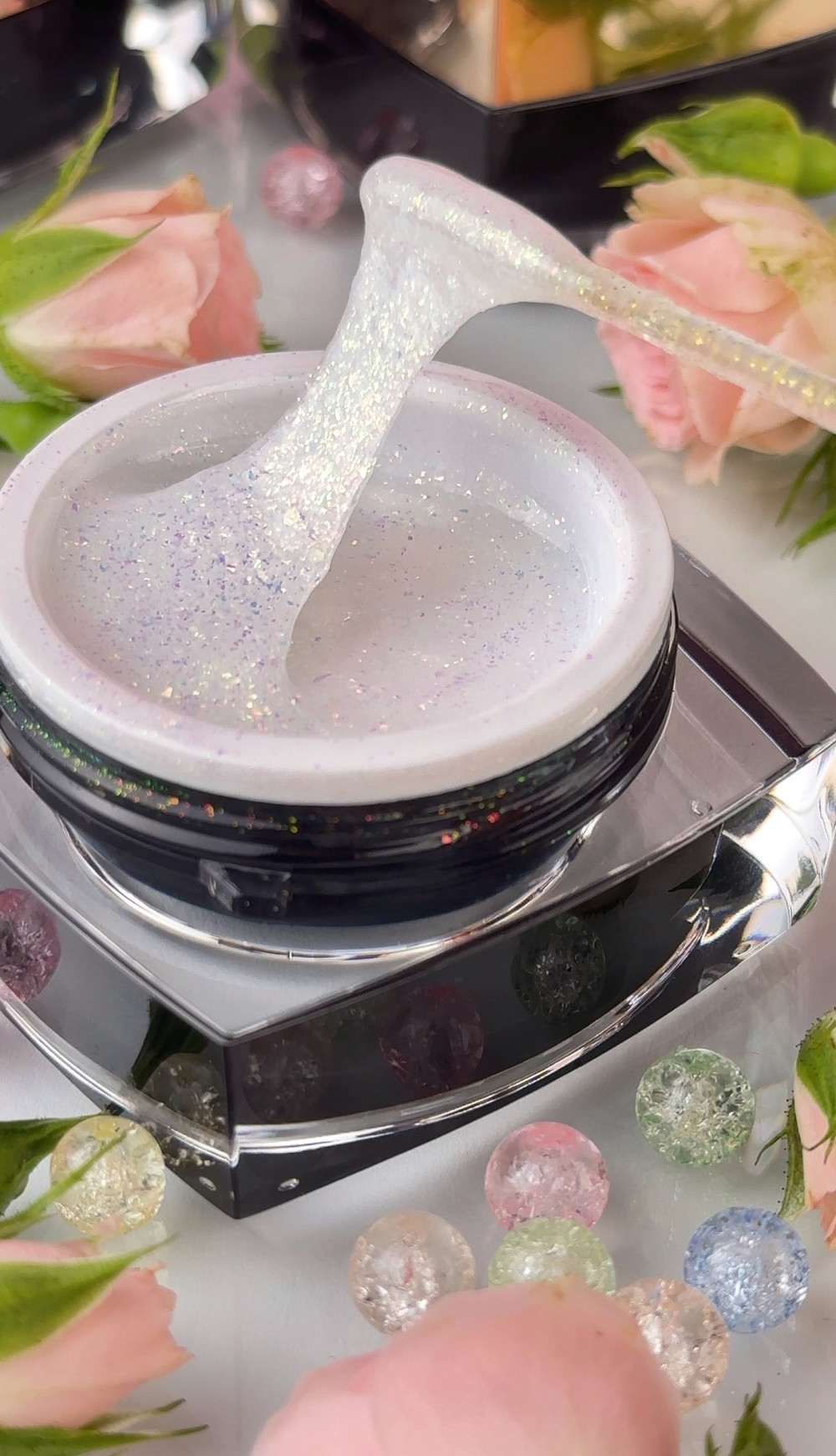 Builder Gel Steffani Starry Sky – это воплощение роскоши и изысканности. Этот гель – умный материал, ведь он легко и равномерно распределяется, удобен в работе и хорошо держит арку ногтя.