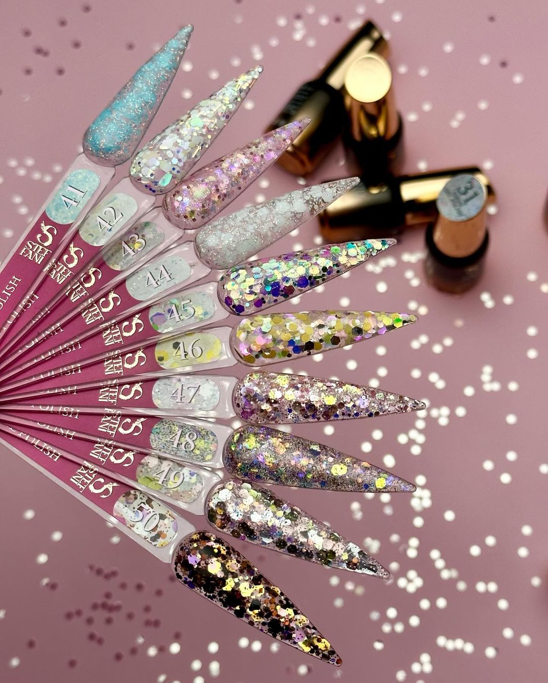 Shine Gel Polish Steffani – это коллекция из 70 блестящих гель-лаков. Благодаря пигментации высокого качества, гель-лак с блестками позволяет создавать идеальное покрытие ногтевой пластины даже одним тонким слоем. Он имеет костинсенцию средней густоты, не растекается и не попадает под кутикулу. Эти блестки разного размера и формы равномерно распределяются по поверхности ногтей, распределяясь ровным слоем и придавая им безупречный вид. Созданы для дизайна и однотонного нанесения – это настоящий рай для творчества в маникюре. Благодаря своей консистенции и разным цветам, они обречены на яркое настроение!