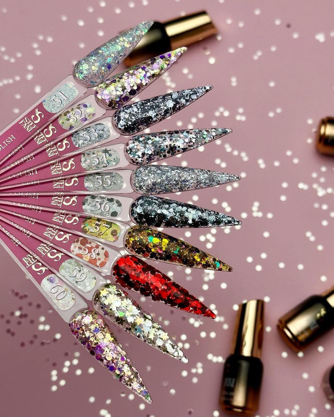 Shine Gel Polish Steffani – это коллекция из 70 блестящих гель-лаков. Благодаря пигментации высокого качества, гель-лак с блестками позволяет создавать идеальное покрытие ногтевой пластины даже одним тонким слоем. Он имеет костинсенцию средней густоты, не растекается и не попадает под кутикулу. Эти блестки разного размера и формы равномерно распределяются по поверхности ногтей, распределяясь ровным слоем и придавая им безупречный вид. Созданы для дизайна и однотонного нанесения – это настоящий рай для творчества в маникюре. Благодаря своей консистенции и разным цветам, они обречены на яркое настроение!