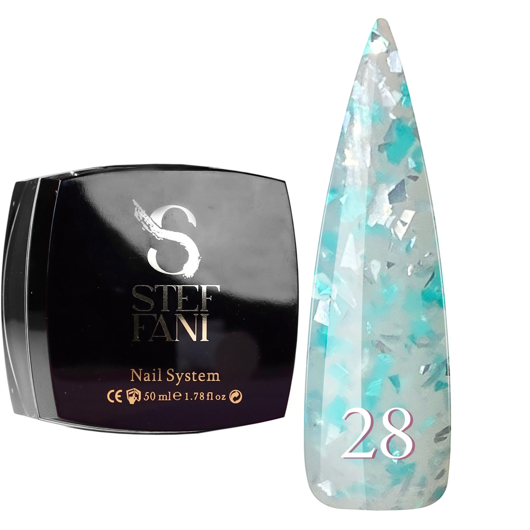 База камуфлирующая длягель-лака Steffani Cover Base №28 полупрозрачный молочный с зелено-бирюзовой и серебристой талью, 50 мл